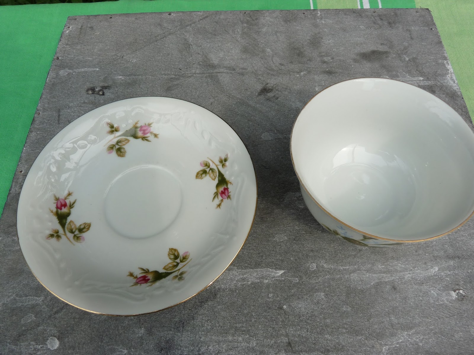 Filiżanka do herbaty i spodeczek z motywem róż i reliefem.