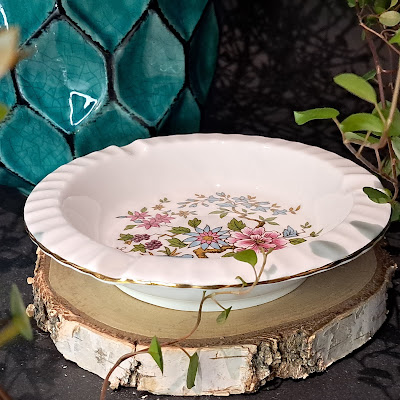 Popielniczka z angielskiej porcelany kostnej, design łączy w sobie europejską elegancję z orientalnym motywem dekoracyjnym. Wzór nawiązuje do estetyki Dalekiego Wschodu – misternie zdobiona kwiatami, liśćmi i delikatnymi gałązkami inspirowanymi tradycyjną sztuką azjatycką.